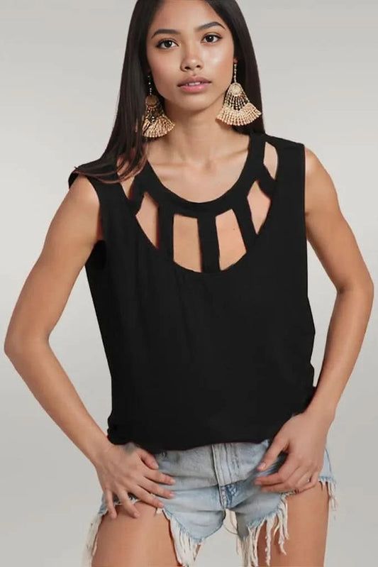 Tan Metallic Sheen Edge Scoop Neck Tank Top