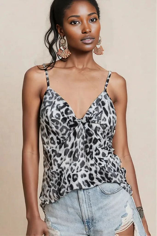 BiBi Leopard Printed Gauze Knit Twist Front Detailed Cami