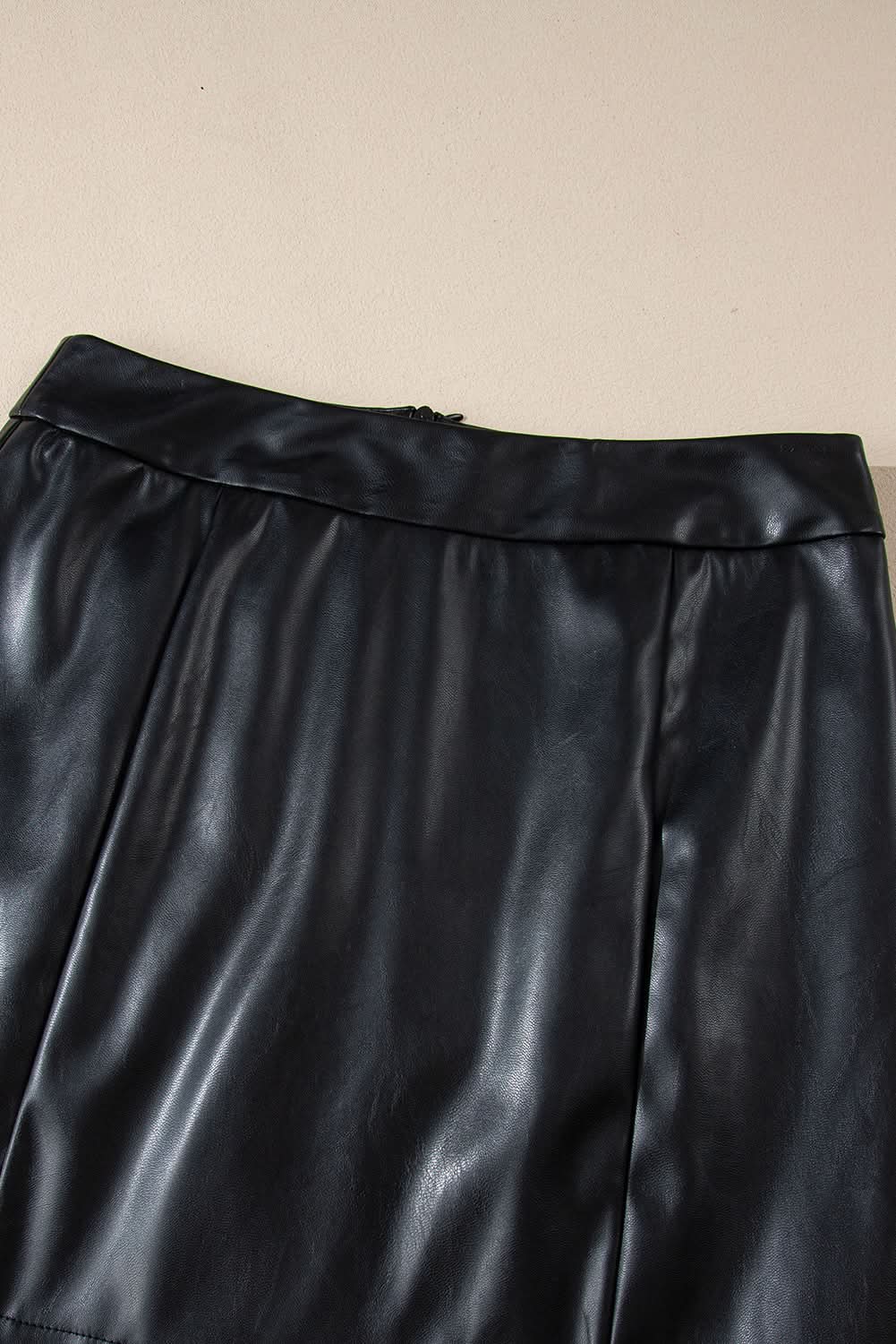 Black PU Leather Side Slits Slim Fit High Waist Mini Skirt