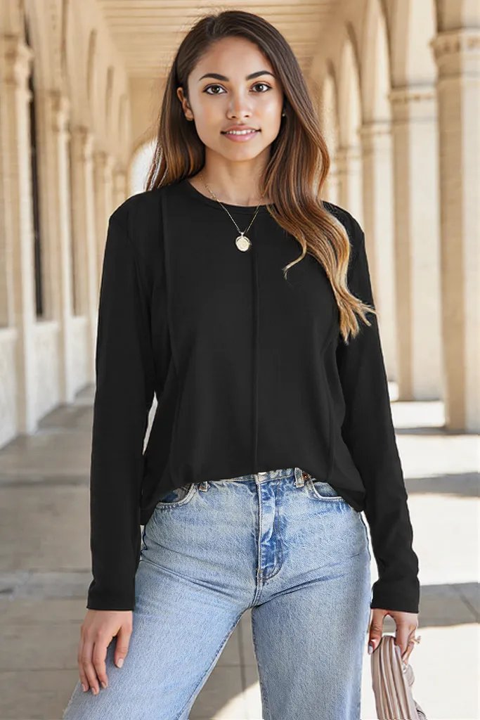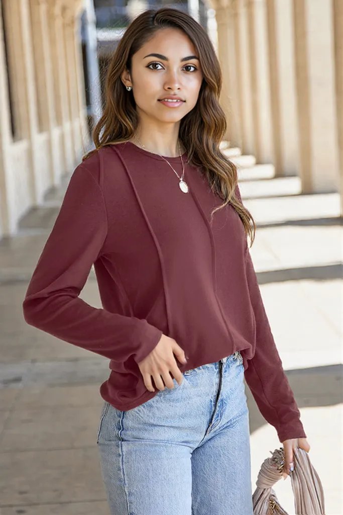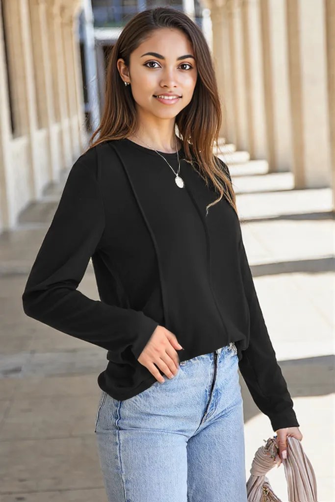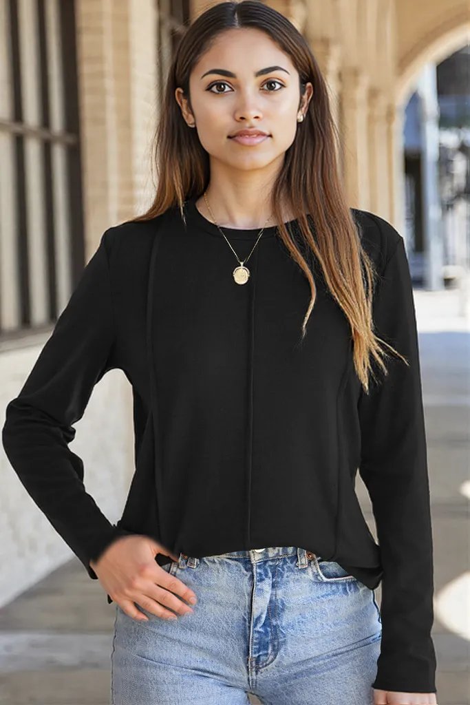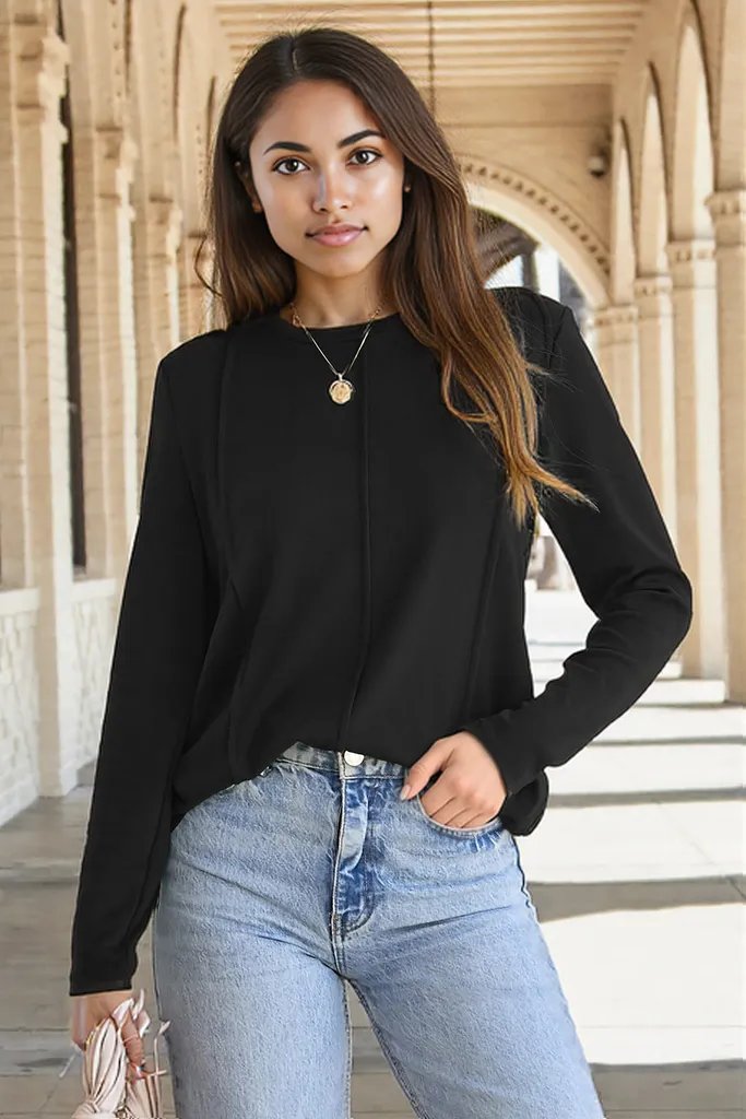 Introducing the Versatile Exposed Seam Crew Neck Long Sleeve Top