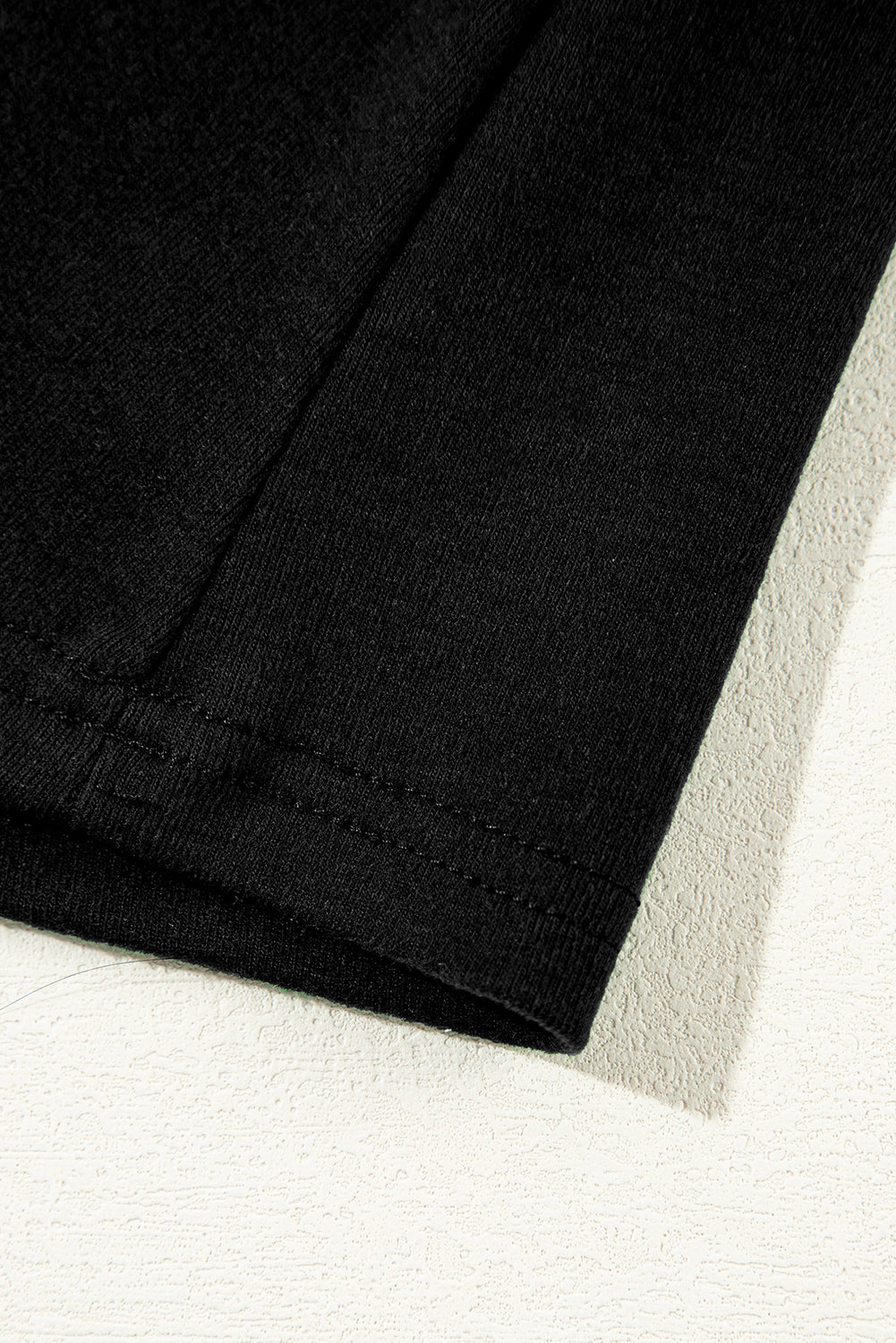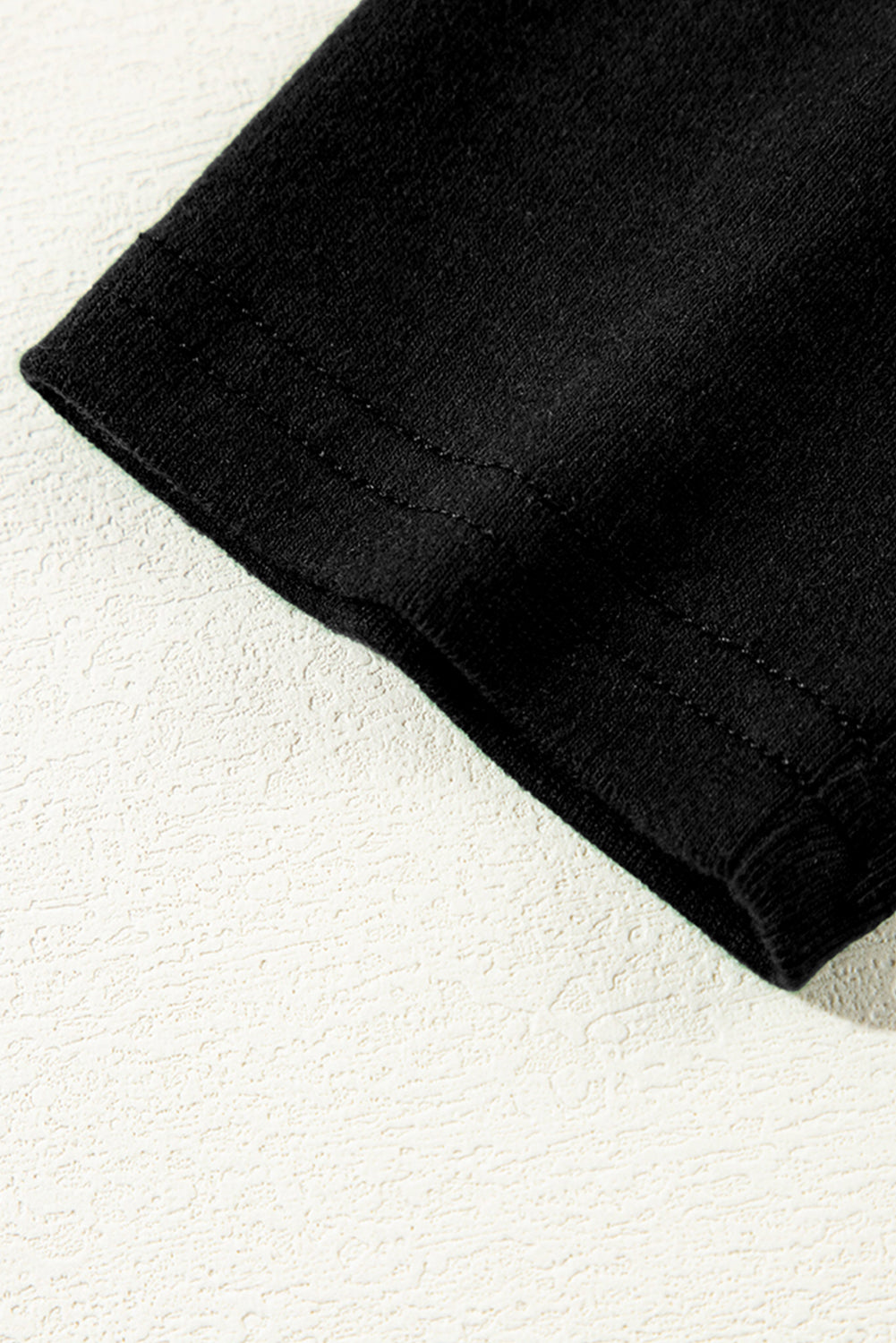 Black Solid Exposed Seam Crew Neck Long Sleeve Top