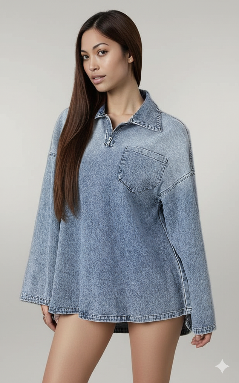 👕 Introducing the Collared Neck Drop Shoulder Denim Top