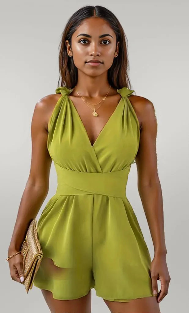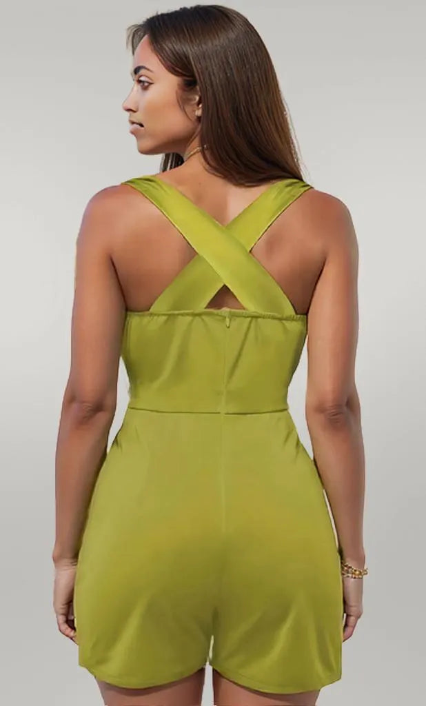 Crisscross Back Solid Color Sleeveless Romper