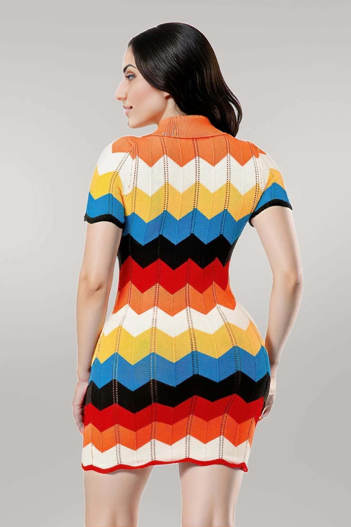 Elevate your casual wardrobe with our Knit Mini Dress. This versatile piece is playful and eye-catching, offering the perfect blend of comfort and bold style. Designed to brighten your look with its vibrant multicolor pattern and flattering silhouette, it's a must-have for any fun and fresh occasion in Miami.