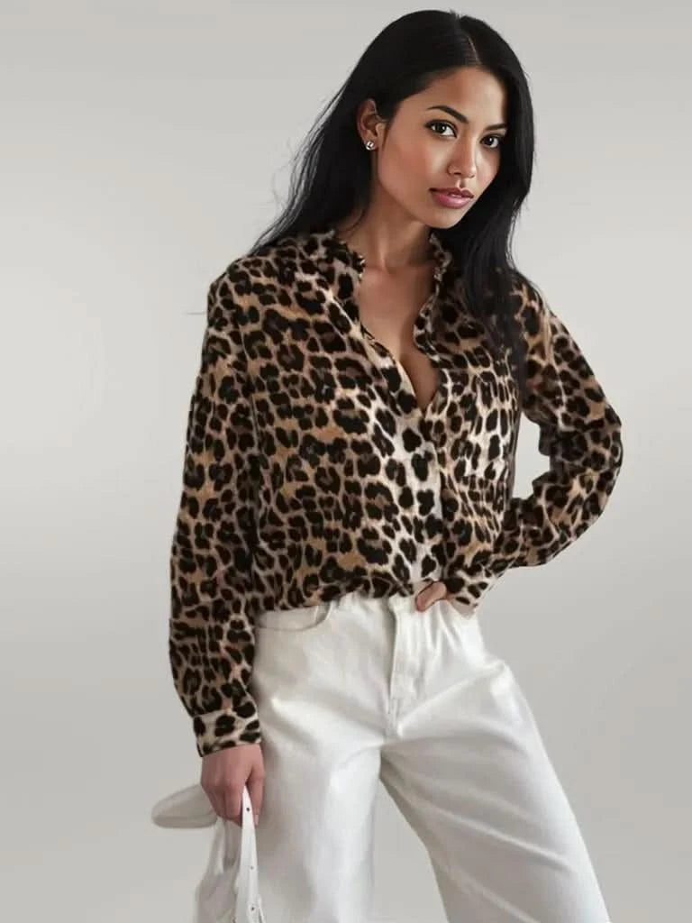 Leopard Collared Neck Long Sleeve Shirt: Fierce Style, Effortless Chic