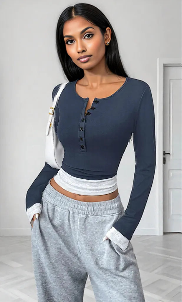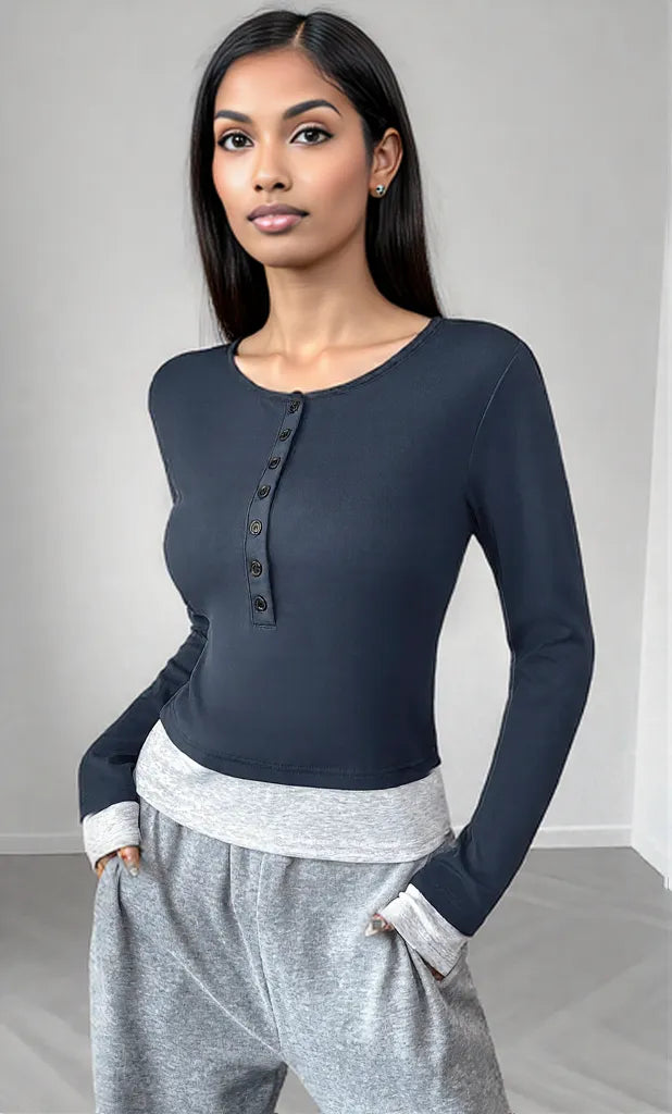 Introducing the Long Sleeve Button Front Fitted T-Shirt