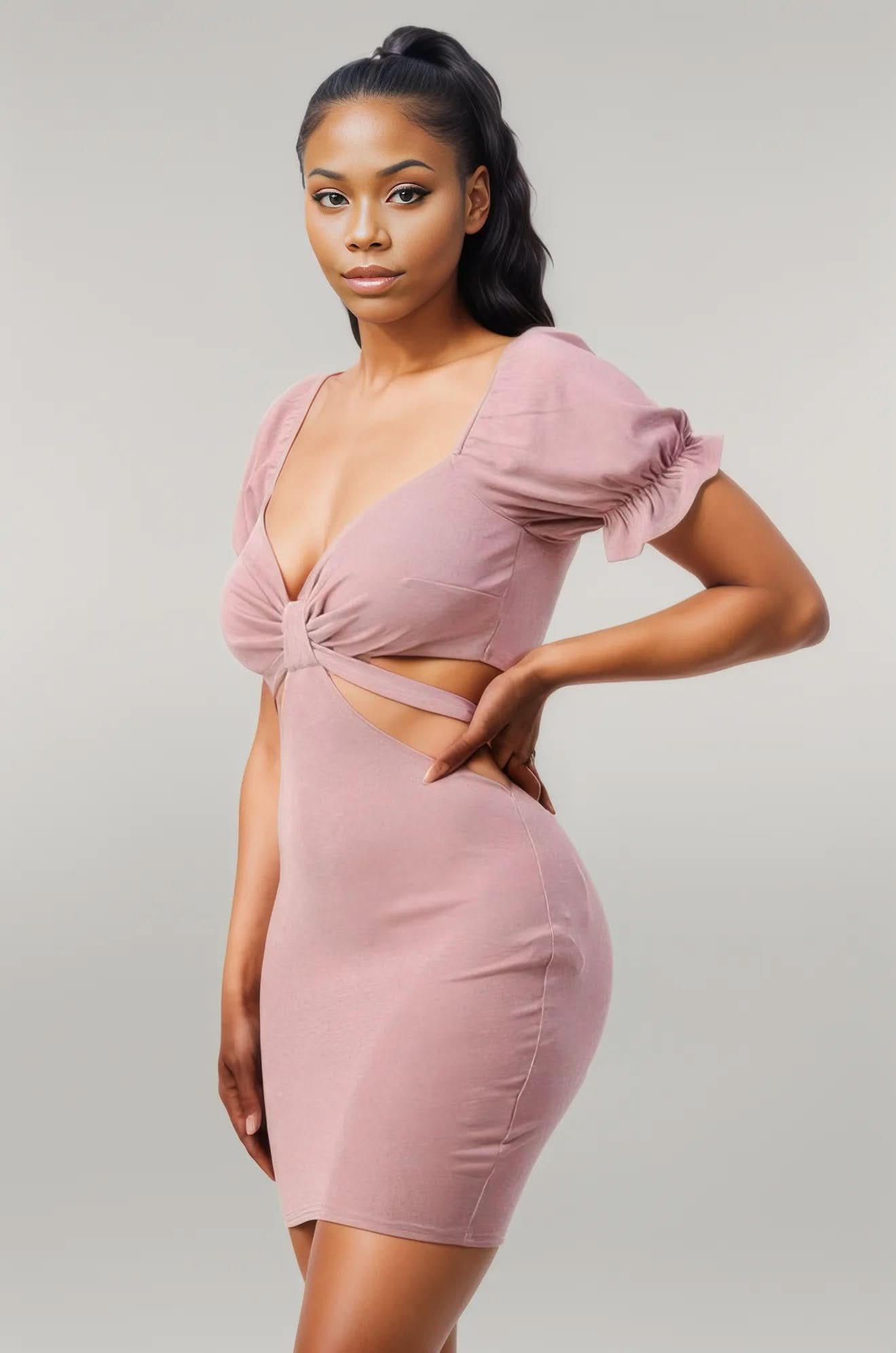 Lux Side Cutout W/ Back Tie Detail Bodycon Dress