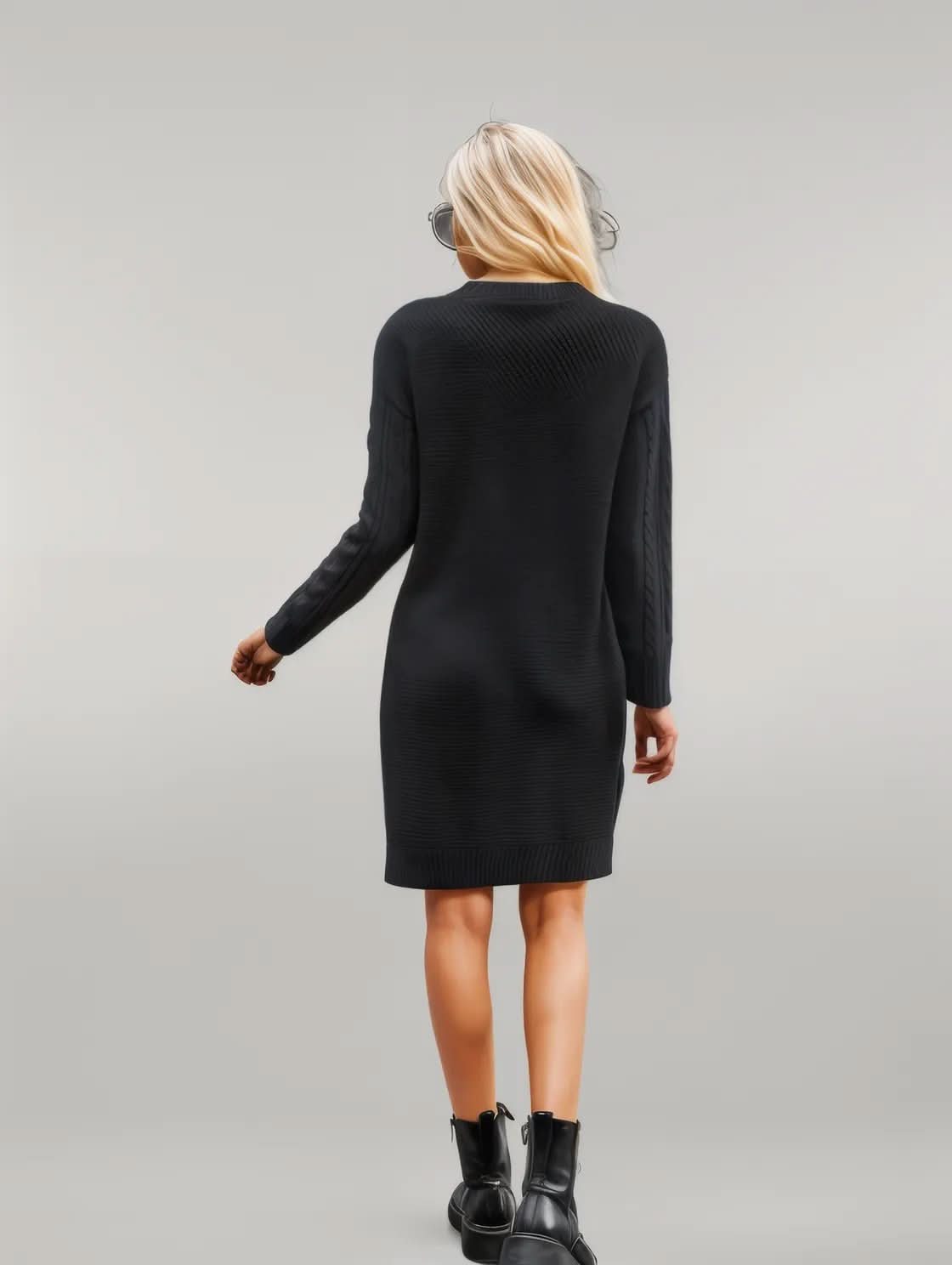 Elevate your wardrobe with this must-have sweater dress. Shop now and experience the perfect blend of comfort and style!