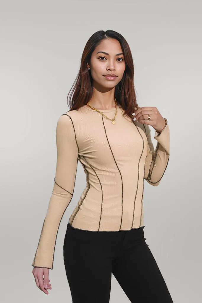 Elevate your casual wardrobe with our Ribbed Round Neck Long Sleeve Blouse. This versatile piece offers a perfect blend of comfort and style, making it a must-have for any season.