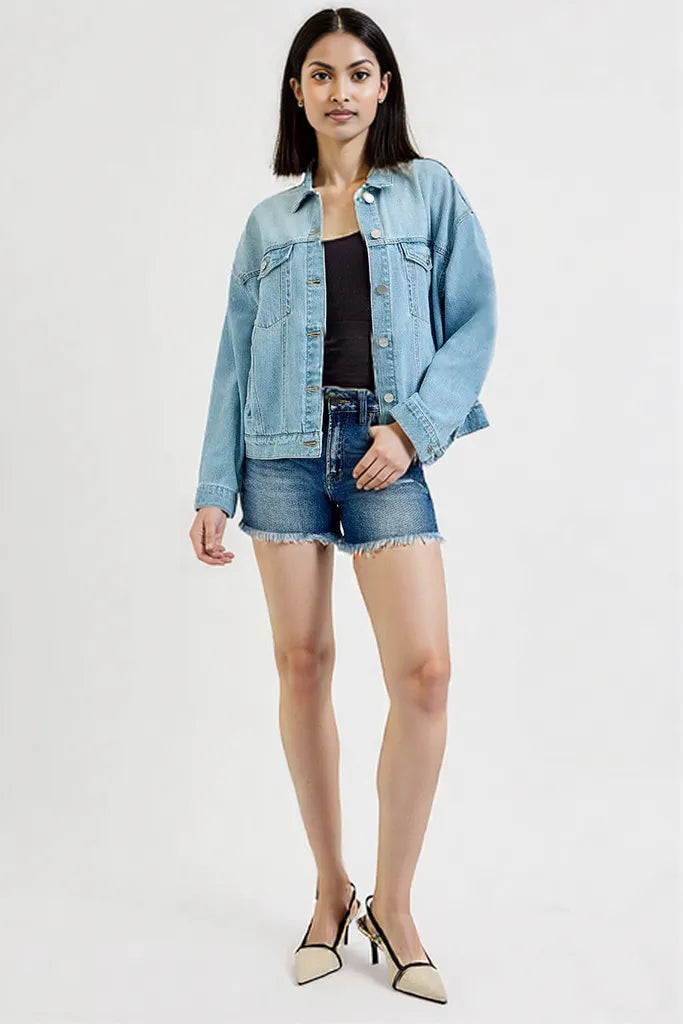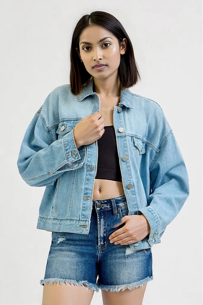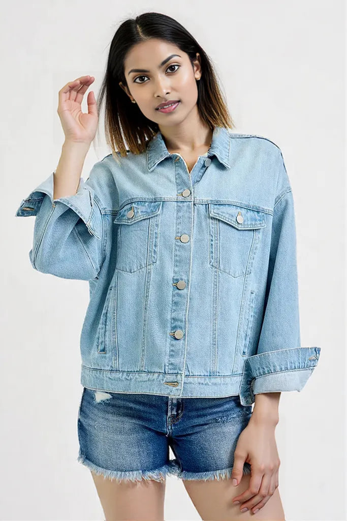Experience the perfect blend of cool and classic. Shop the RISEN Oversized Denim Jacket today and master year-round style!