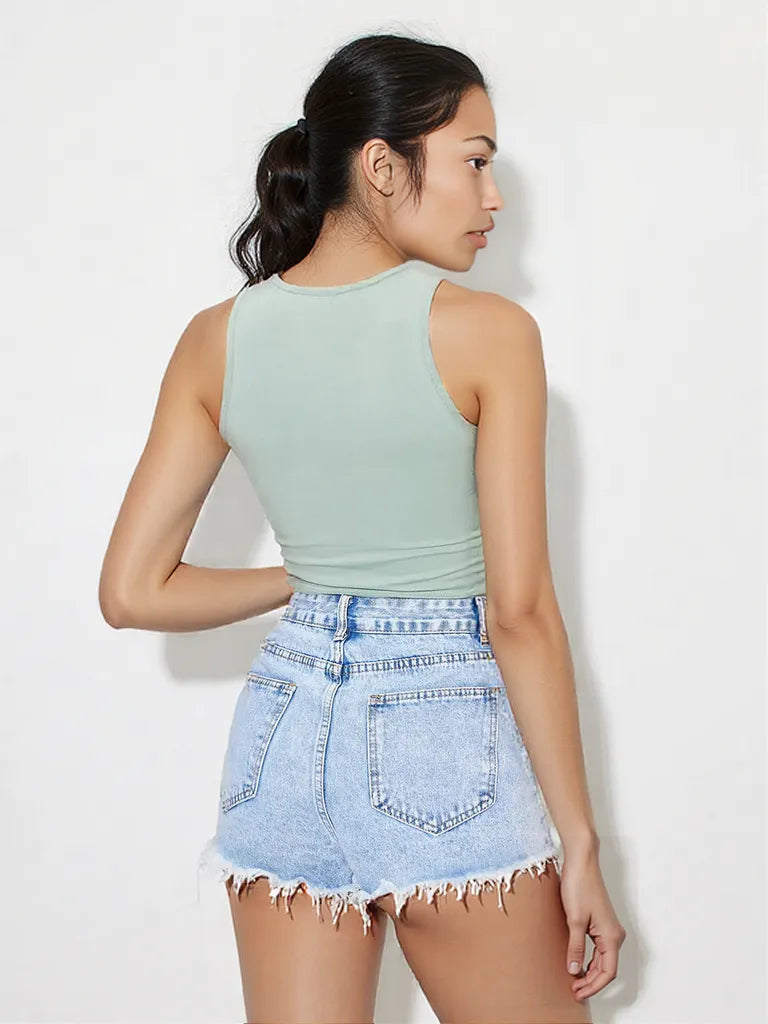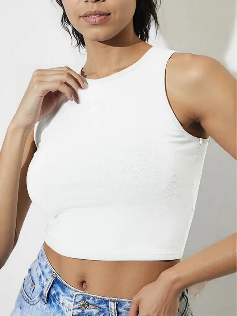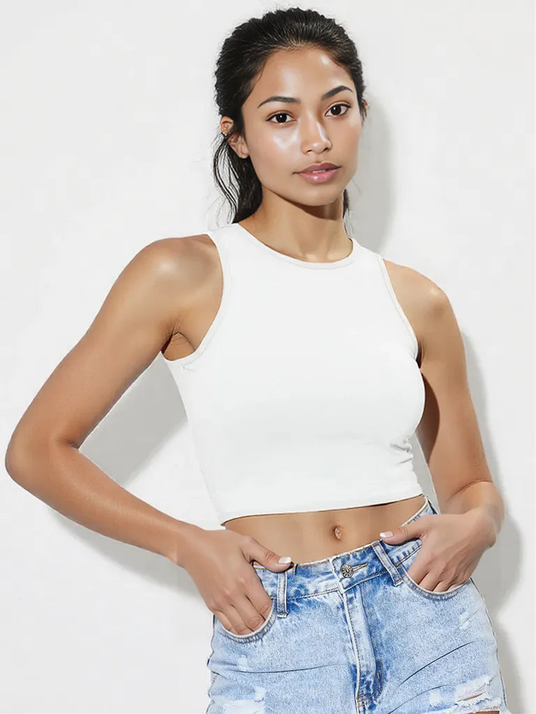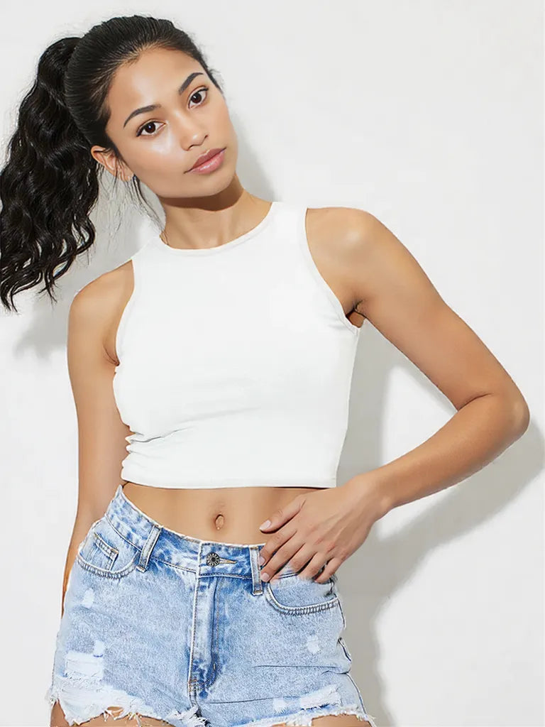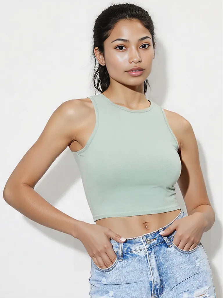 Experience the comfort and style of our Round Neck Cropped Tank. Shop now!