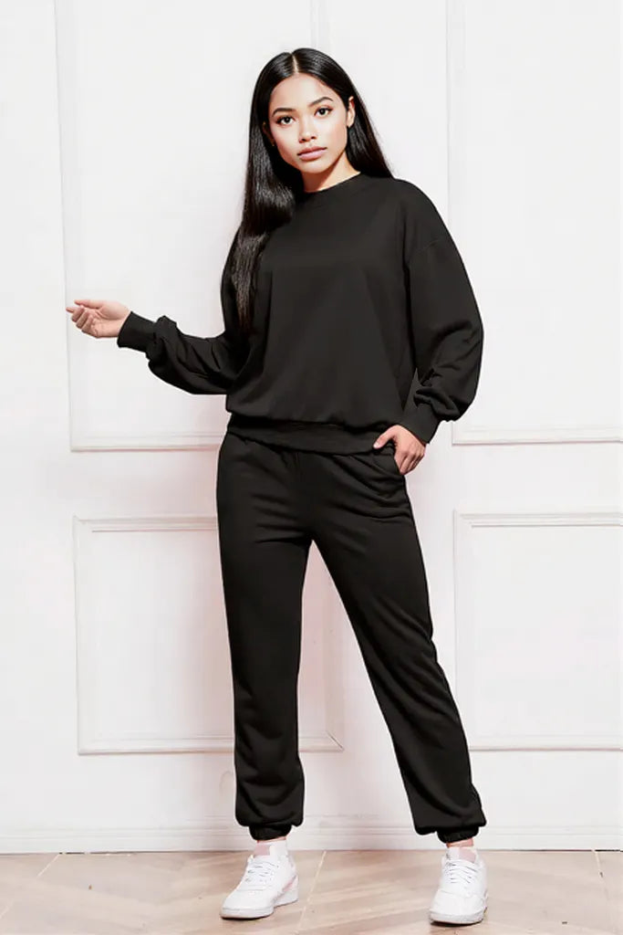 Experience the perfect blend of simplicity and comfort. Shop our Round Neck Long Sleeve Sweatshirt and Pants Set now!
