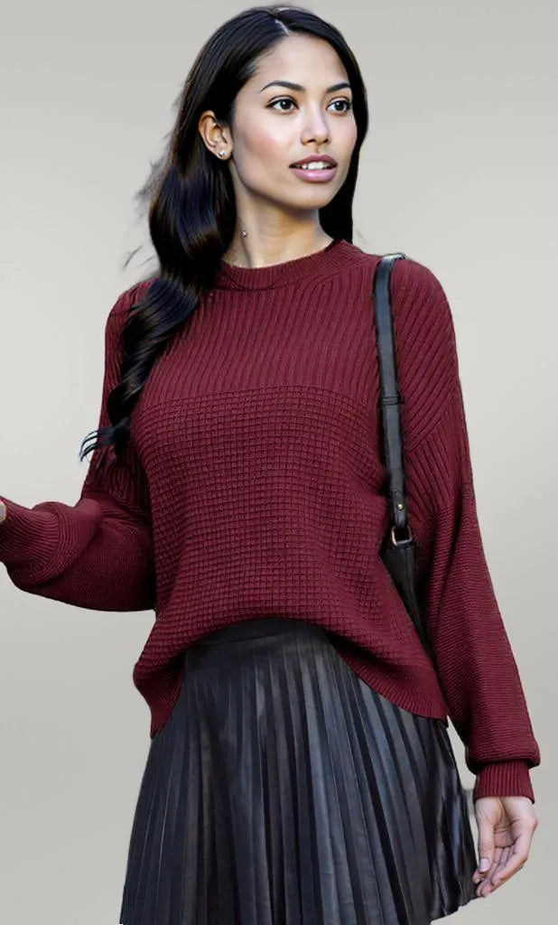 Elevate your cool-weather wardrobe with our Mixed Textured Knitted Crew Neck Sweater. This versatile piece offers a perfect blend of cozy comfort and sophisticated style, making it a must-have staple for any season. The unique combination of waffle-knit and ribbed details adds a touch of modern texture to a timeless classic.