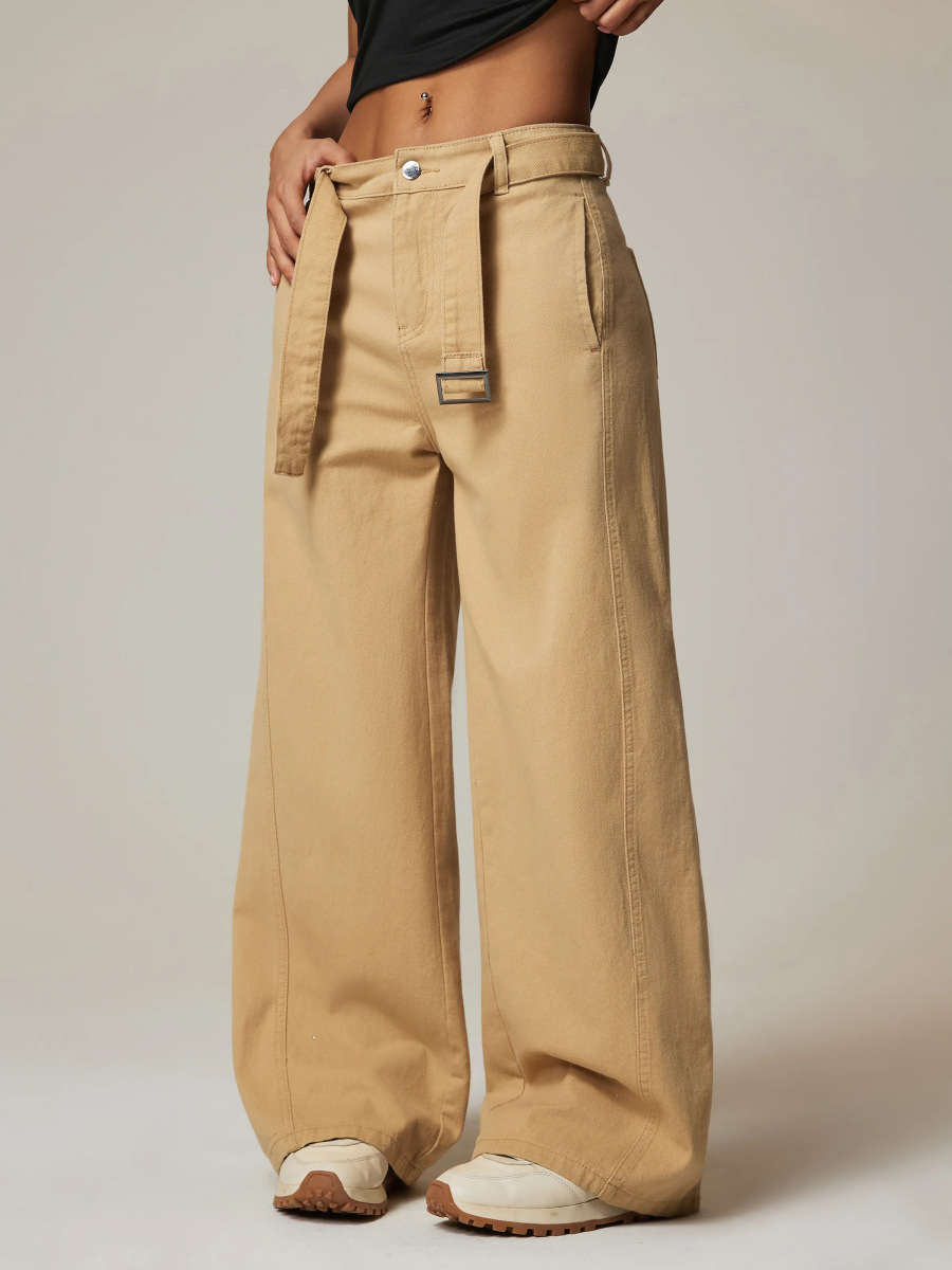 Spring Casual Straight Leg Pants Women Jeans Women Wide Leg Pants with Belt Jeans Women
