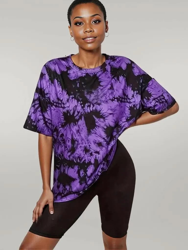 Embrace a touch of retro style with this Tie-Dye Round Neck Short Sleeve T-Shirt. This trendy tee features a vibrant tie-dye print and a relaxed, oversized fit, perfect for adding a pop of color and casual cool to your wardrobe. The classic round neck and short sleeves offer a comfortable and versatile look.