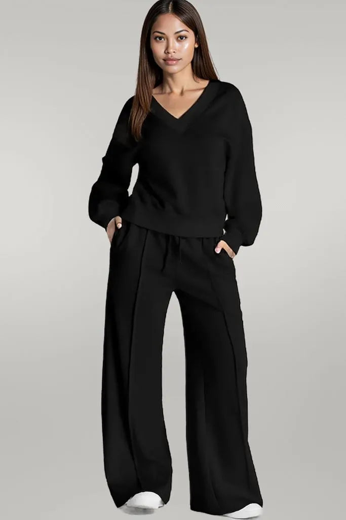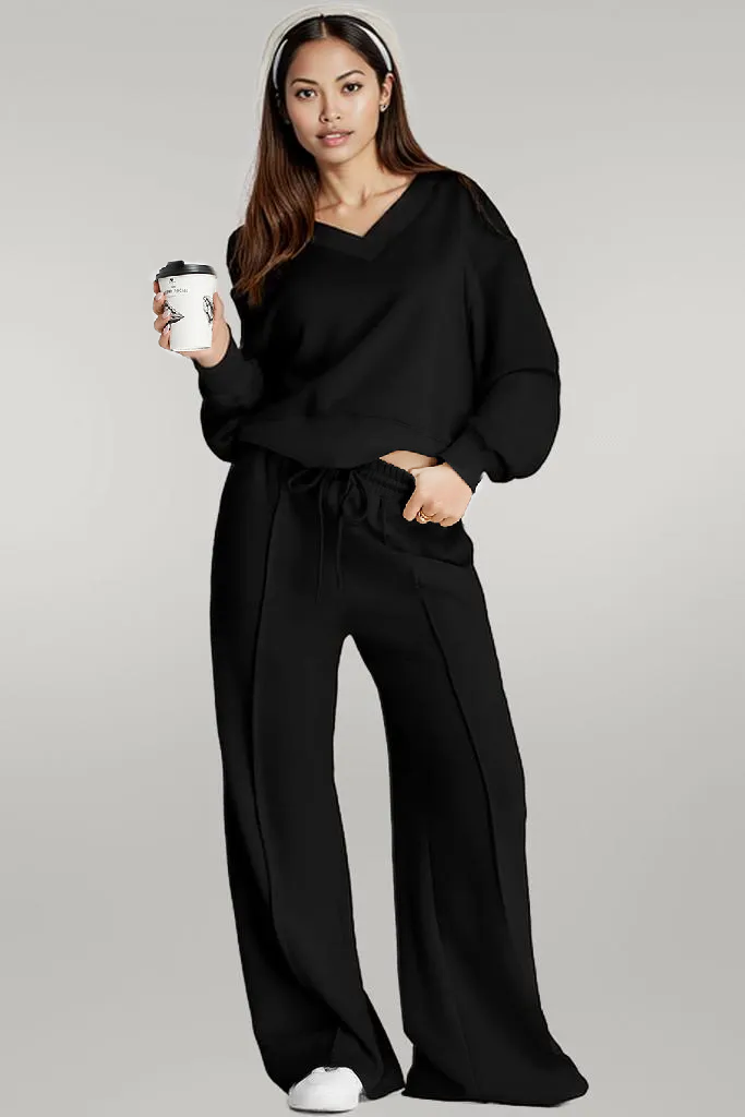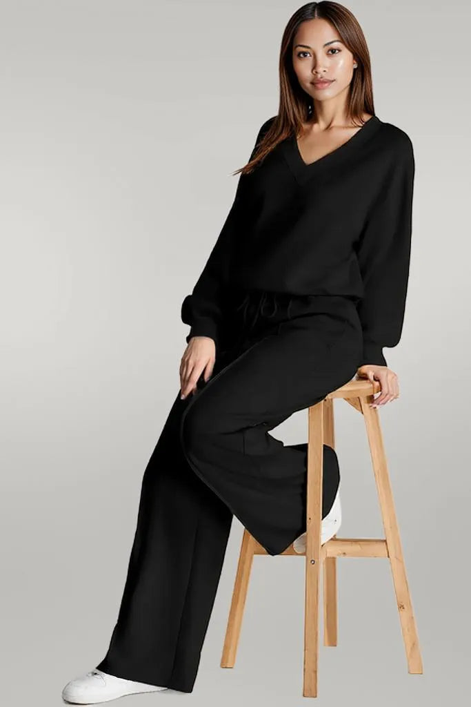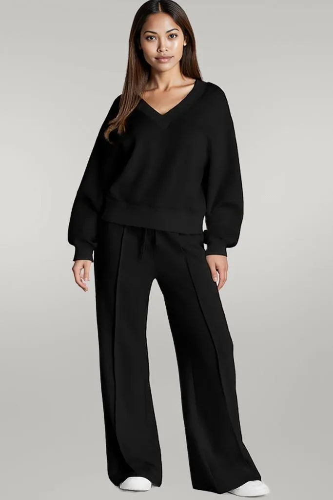 Discover a new level of casual luxury. Shop our V-Neck Long Sleeve Active Set now for unparalleled comfort and style!