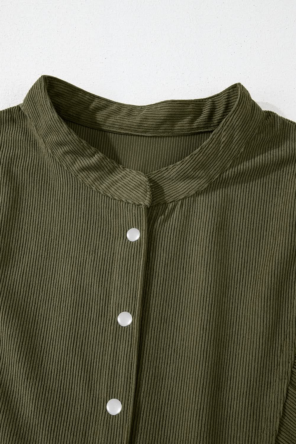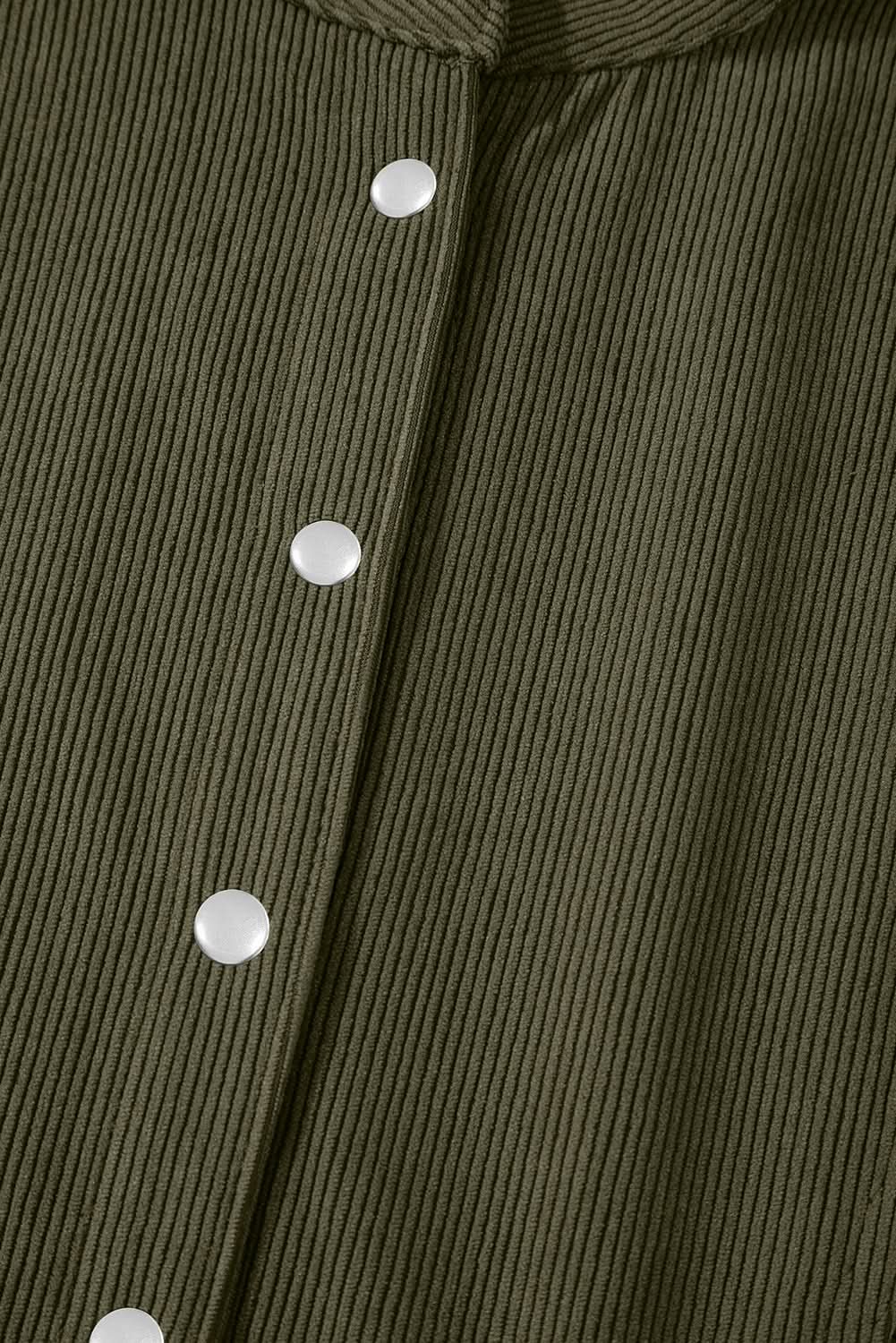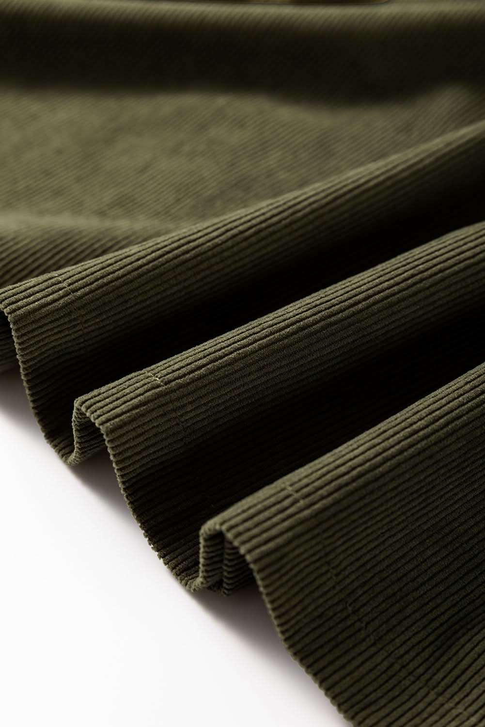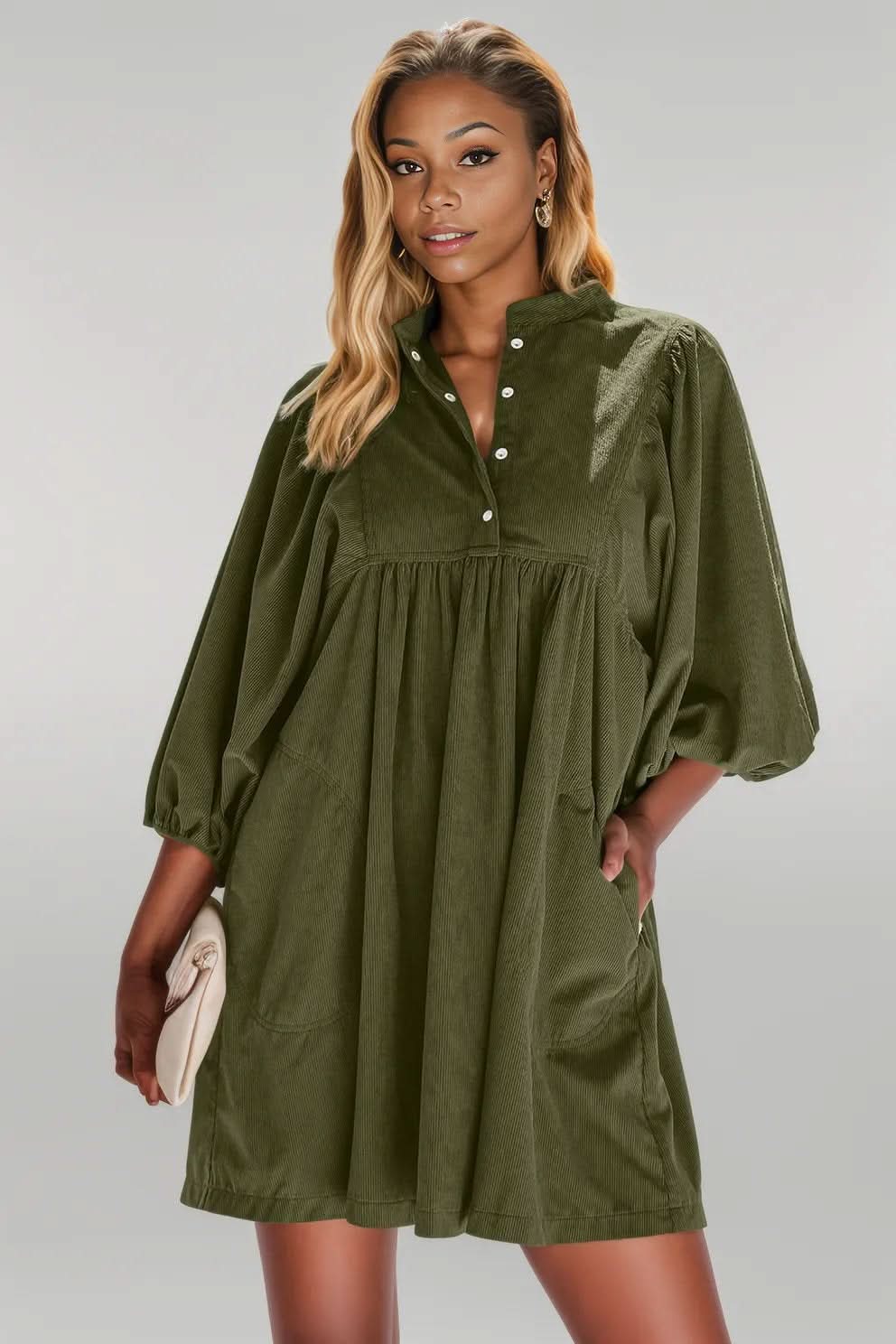 Vineyard Green Corduroy Snap Buttons Empire Waist Bracelet Sleeve Dress