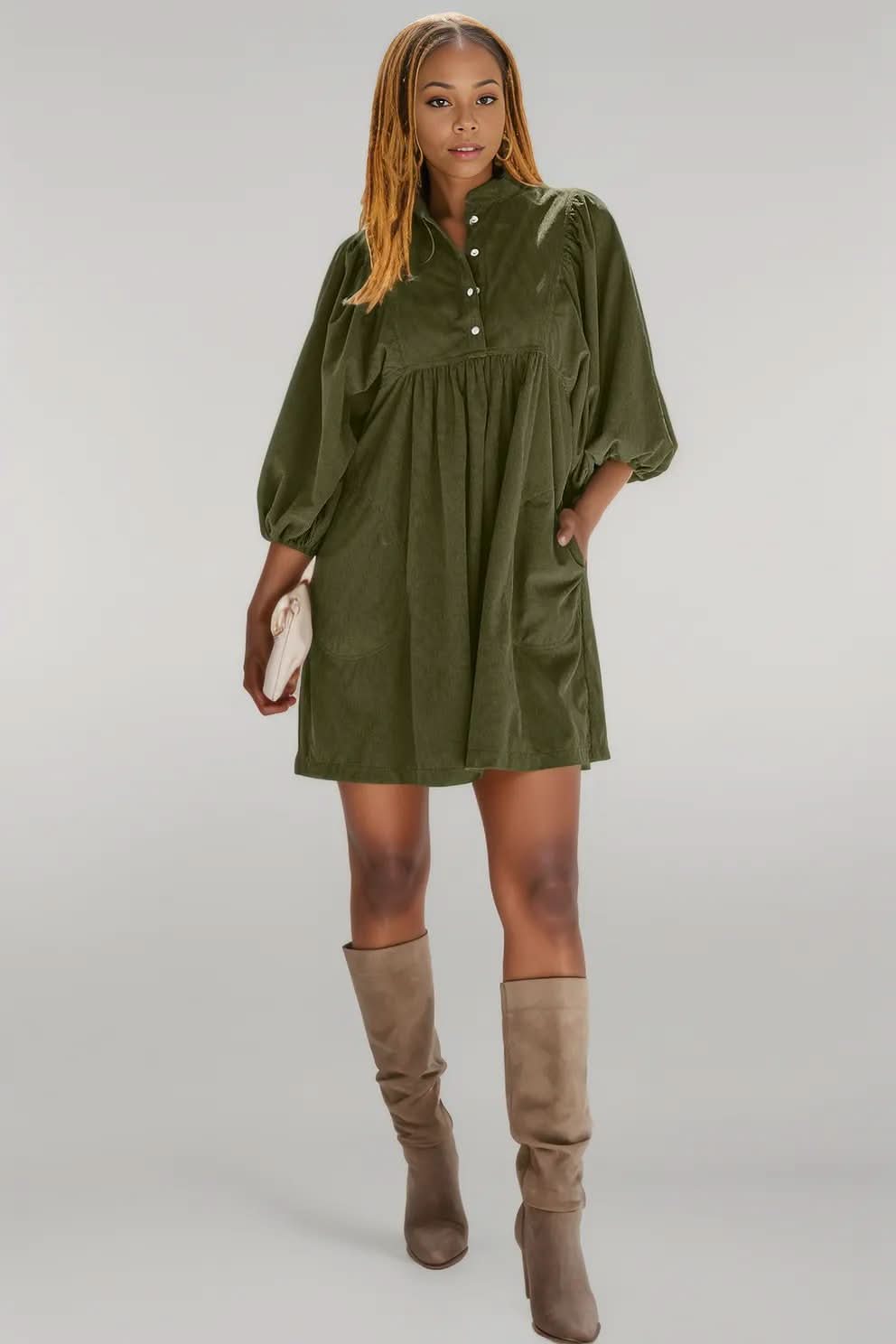 Bold and Stylish: Vineyard Green Corduroy Dress