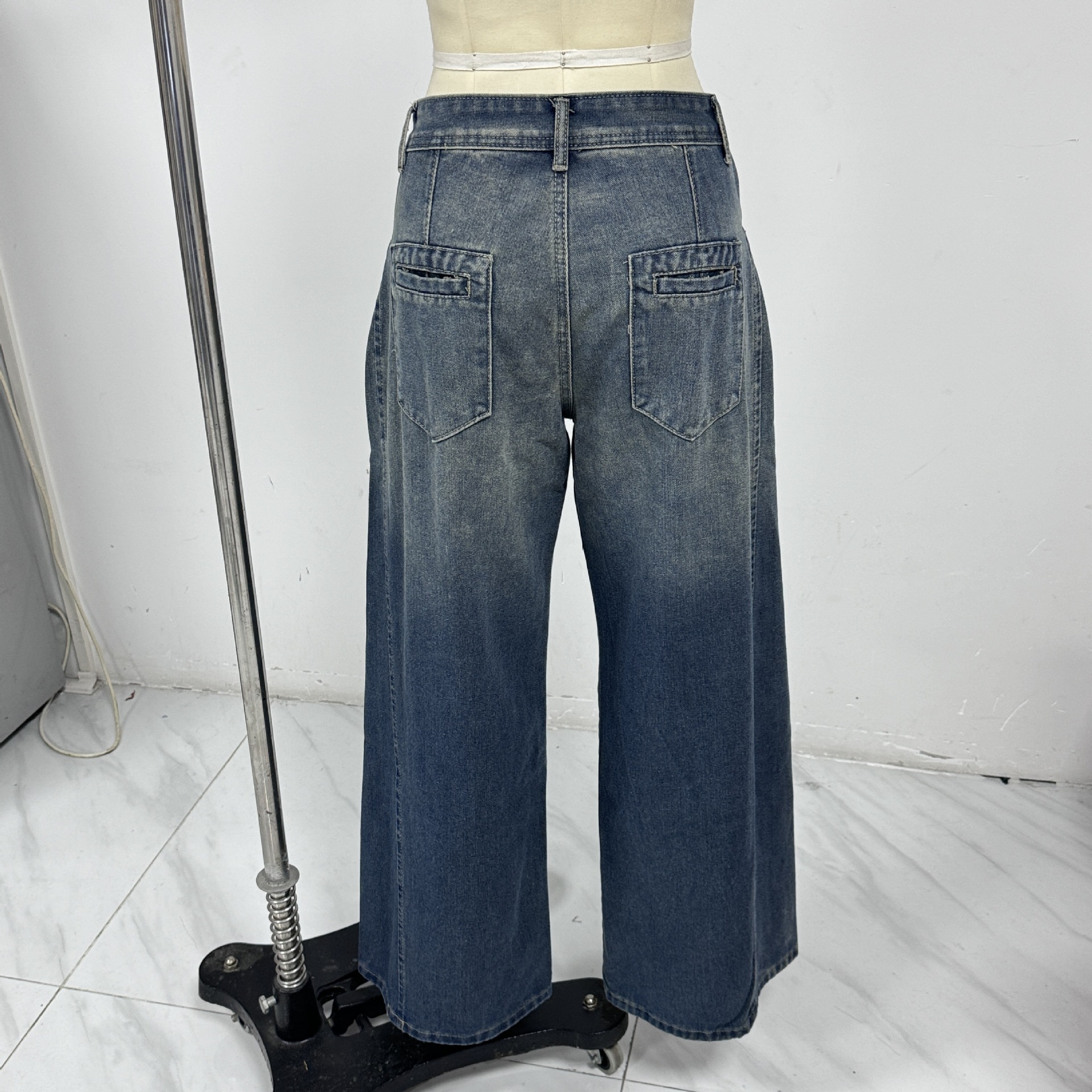Wide Leg Jeans Tide Brand Women Clothing Washed Worn Loose Straight Long Pants